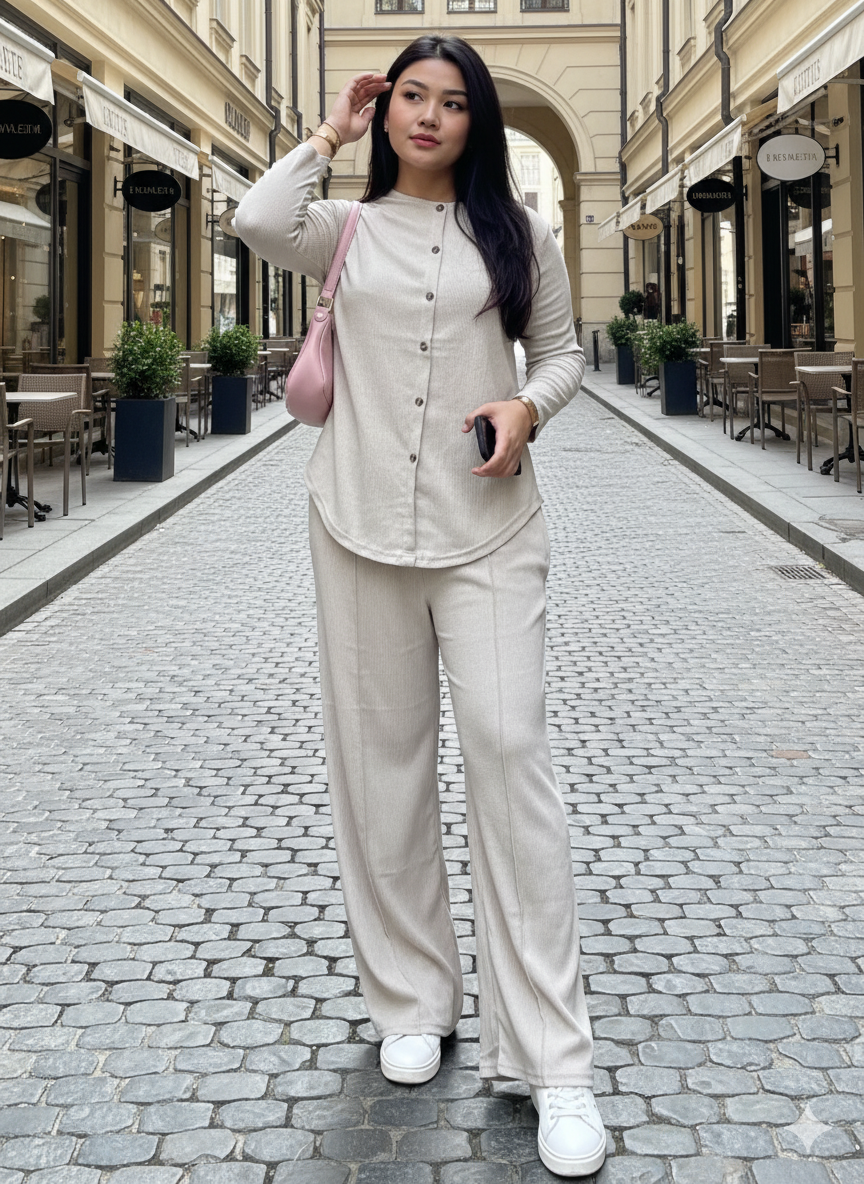 Step into effortless elegance with the Luna Set. Designed for modern sophistication, this co-ord features a sleek button-down top and matching bottoms in a timeless silhouette. The name Luna embodies its subtle charm — versatile enough for daytime ease yet polished enough for evening allure. Comfortable, chic, and endlessly wearable, the Luna Set is a wardrobe staple that transitions seamlessly with your lifestyle.